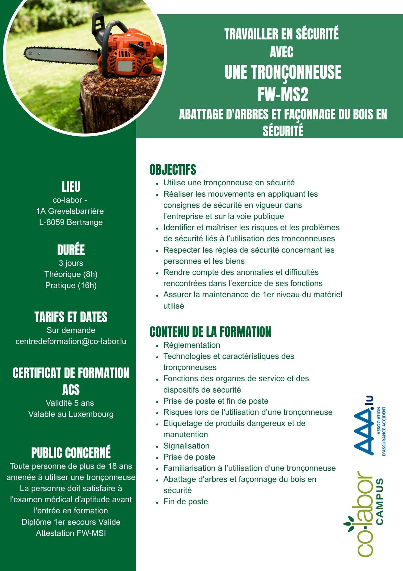 Formations en matière de travaux en sécurité