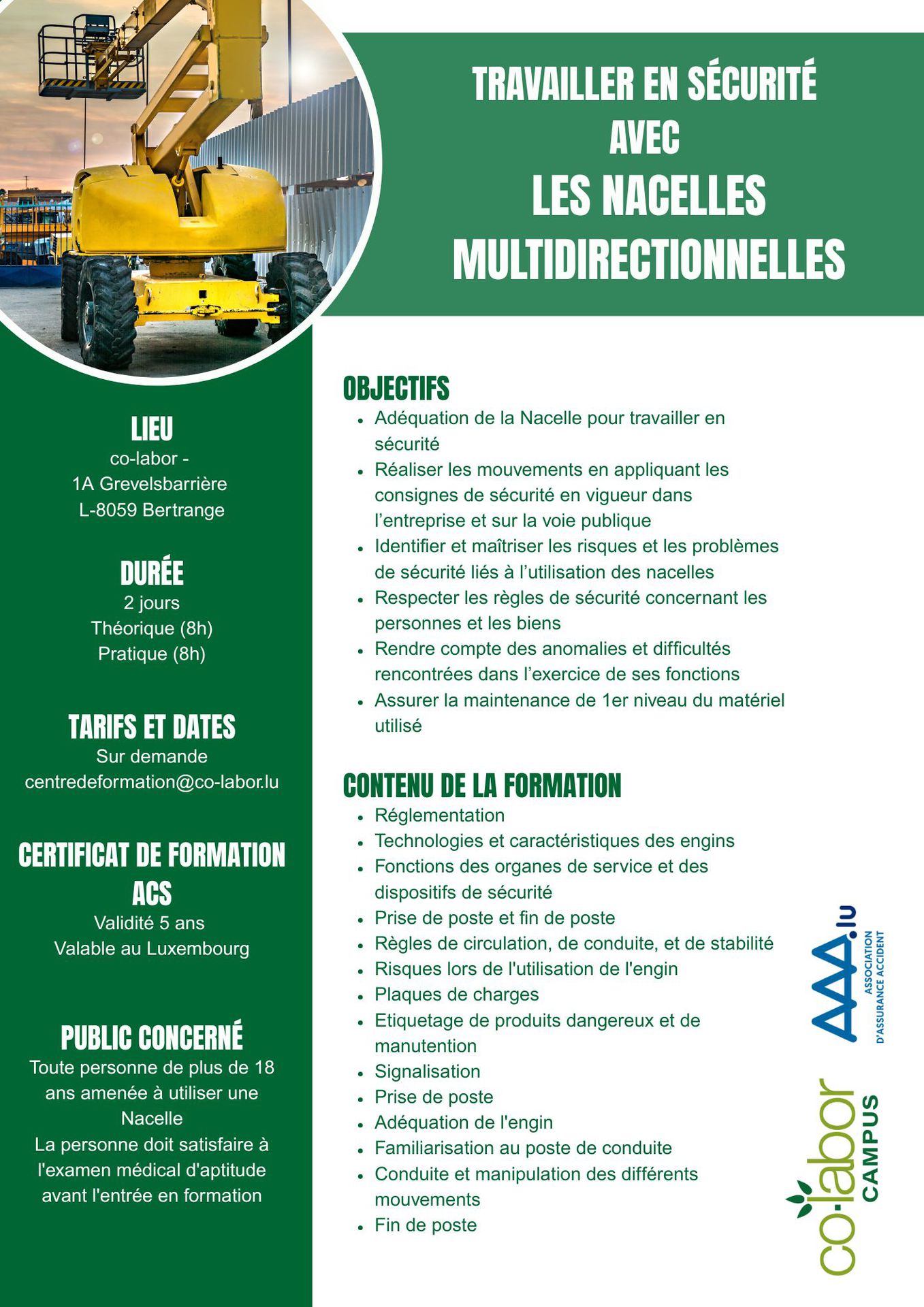 Manipulation en sécurité de nacelles multidirectionnelles en appliquant les consignes de sécurité en vigueur dans l'entreprise et sur la voie publique.