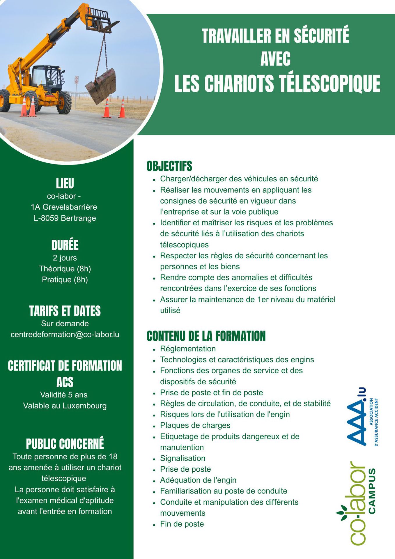 Formations en matière de conduite d'engins en sécurité