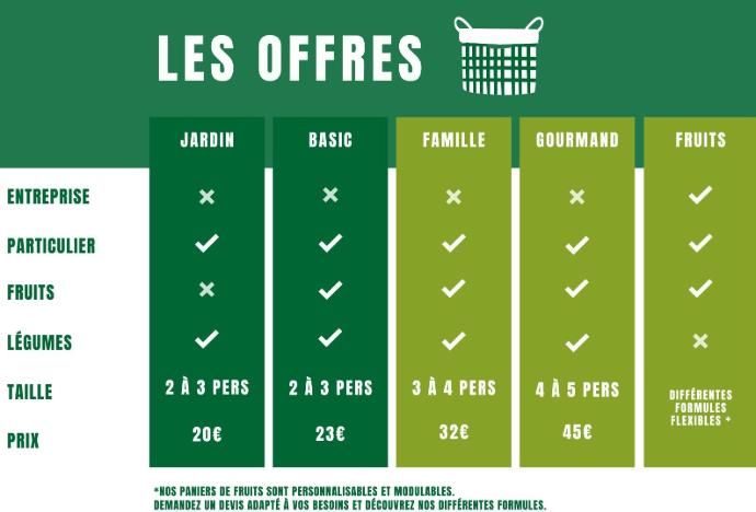 Le contenu exact des paniers est annoncé chaque semaine sur notre page web.